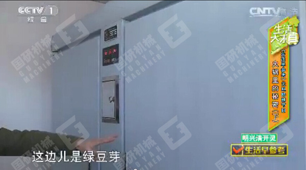 2015年1月3日早8:33,中央電視臺(tái)一套《生活早參考》( 20150103 元旦特別節(jié)目火鍋里的秘密) 播出了市場(chǎng)上毒豆芽的生產(chǎn)和危害,并重點(diǎn)播放了位于北京朝陽(yáng)區(qū)東壩后街臨77號(hào)的良仕德(北京)餐飲管理有限公司所屬的快餐店使用國(guó)研豆芽機(jī)自行生產(chǎn)無(wú)公害豆芽的情景,國(guó)研牌無(wú)公害豆芽機(jī)在該節(jié)目中進(jìn)行了詳細(xì)介紹和推崇。國(guó)研牌綠色無(wú)公害豆芽機(jī)成為抗擊毒豆芽最佳的無(wú)公害豆芽生產(chǎn)設(shè)備,受到食品行業(yè)的廣泛歡迎。