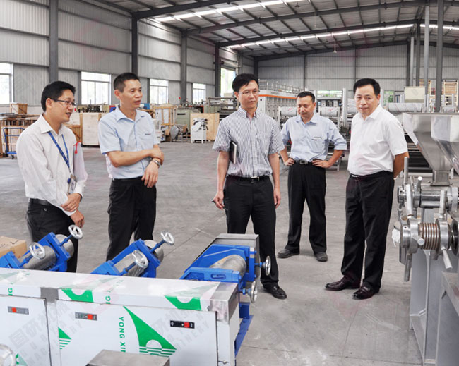 李局長(zhǎng)一行來到公司就深入車間了解生產(chǎn)情況,在河粉機(jī)裝配車間李局長(zhǎng)詳細(xì)詢問了河粉機(jī)的功能原理和價(jià)格,當(dāng)?shù)弥獓?guó)研牌河粉機(jī)占領(lǐng)了國(guó)內(nèi)主要市場(chǎng)時(shí)十分高興。李局長(zhǎng)一行還在公司黨支部活動(dòng)室觀看了廣州電視臺(tái)播出的報(bào)道我司開展黨建工作的《紅棉璀璨》專題節(jié)目,隨后開展了討論,對(duì)我司黨建工作開展的有聲有色給予了高度評(píng)價(jià)。